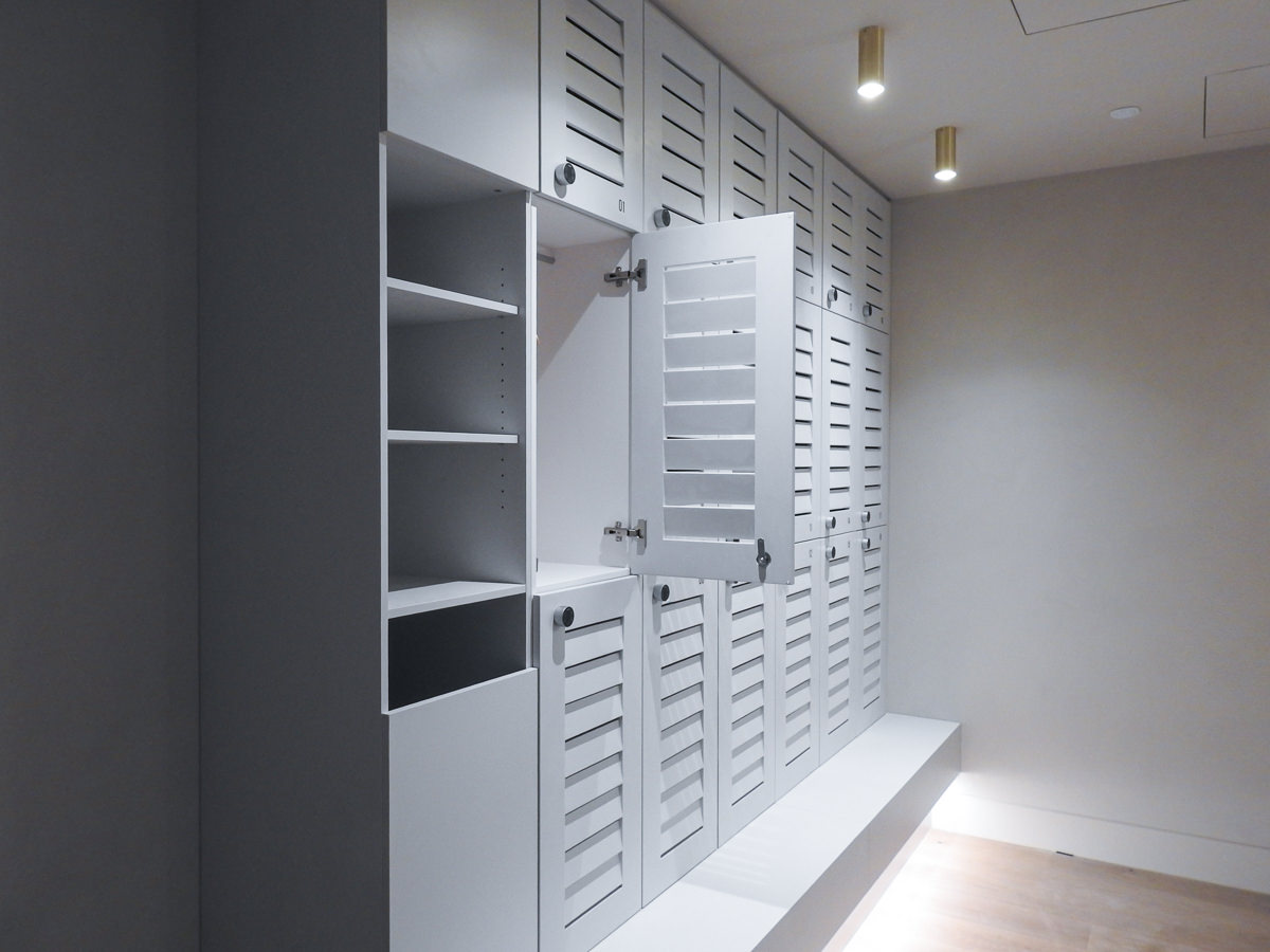 - Bespoke top of the range IntraSpace lockers with custom louvre doors
